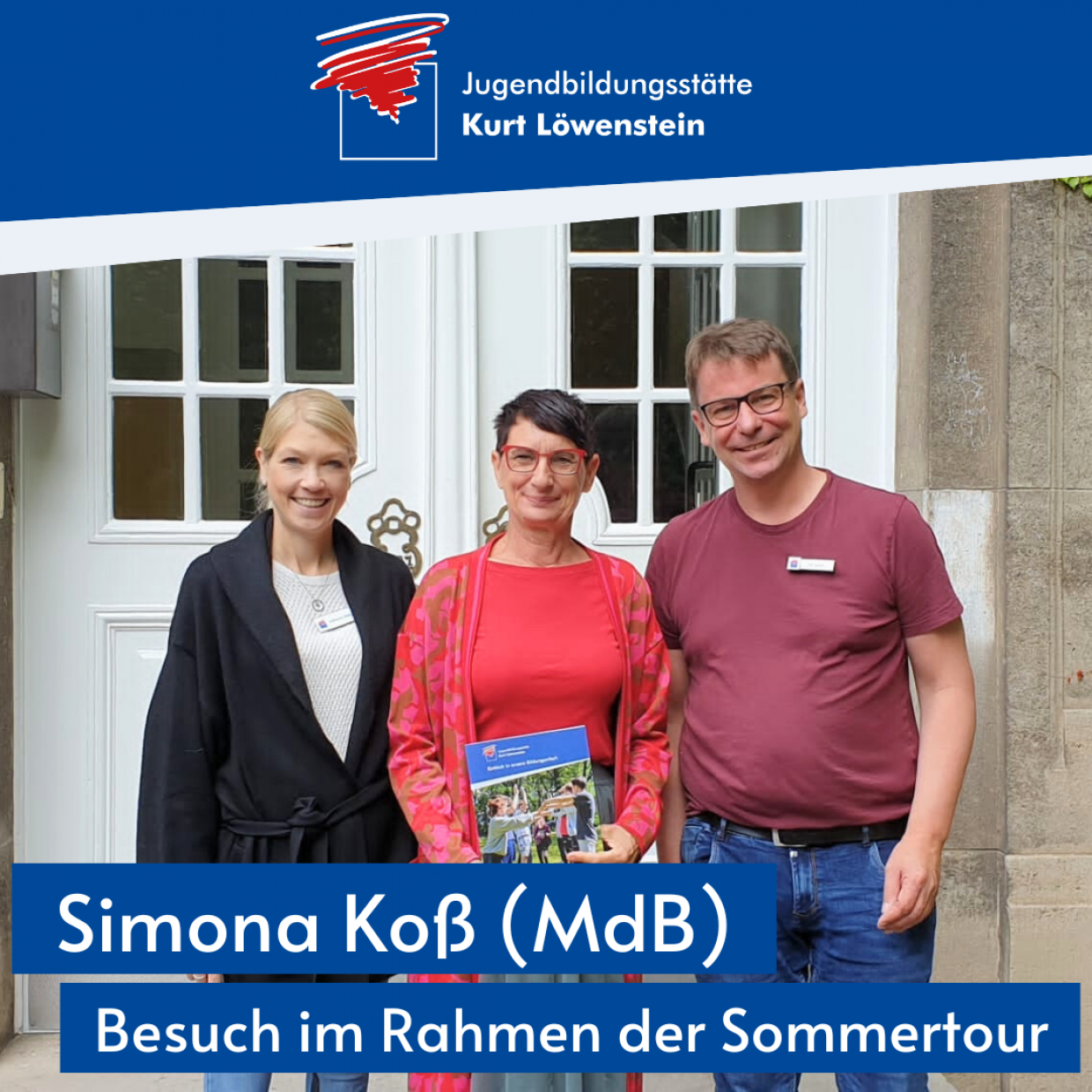 Am Donnerstag, dem 20. Juli besuchte die Bundestagsabgeordnete Simona Koß im Rahmen ihrer diesjährigen Sommertour die Jugendbildungsstätte Kurt Löwenstein, um sich über das Projekt „Perspektive Bleiben“ zu informieren. Das Projekt bietet unterschiedlichste Angebote für Jugendliche und junge Erwachsene mit und ohne Fluchterfahrung, wie z.B. die Ferienwerkstatt „Ich will was von der Welt!“, die vom 16.-23. Juli in der Jugendbildungsstätte Kurt Löwenstein stattgefunden hat. Simona Koß tauschte sich mit den Teilnehmenden der Ferienfahrt aus und lud für November eine Gruppe junger Ukrainer*innen zu einem Gespräch und einer Führung in den Bundestag ein.