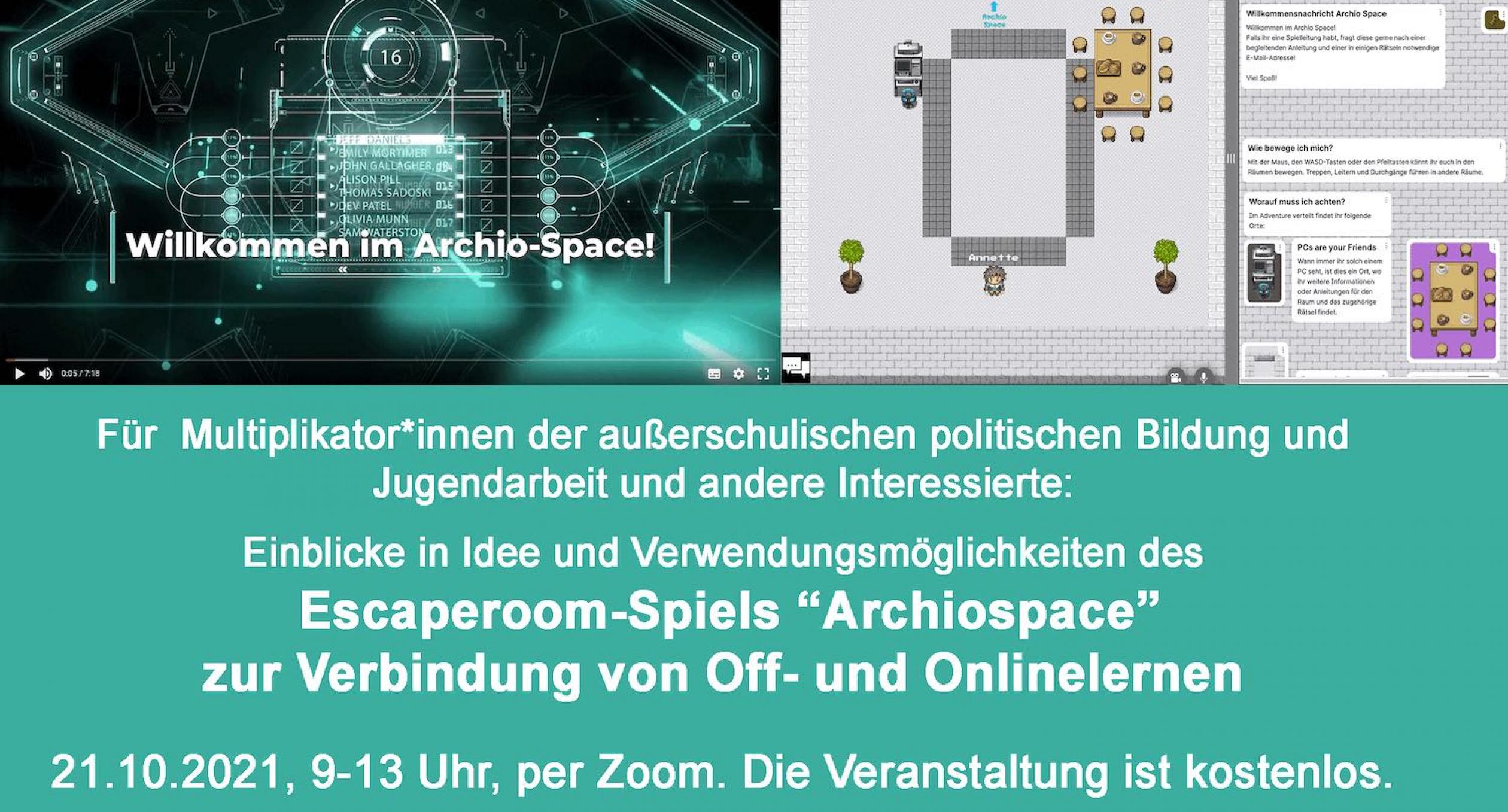Online-Fortbildung am 16.11.22, 9-13 Uhr zu EscapeGames/ “Archiospace“ in der Jugendbildung