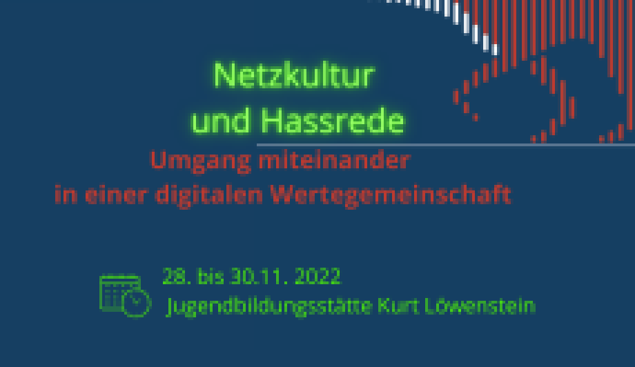 Vom 28.-30. November 2022 findet die Kooperation "Train the Trainer Netzkultur und Hassrede“ zwischen dem lmb und der Jugendbildungsstätte Kurt Löwenstein im Rahmen des Bildungsprogramms jumblr statt.Weiterlesen