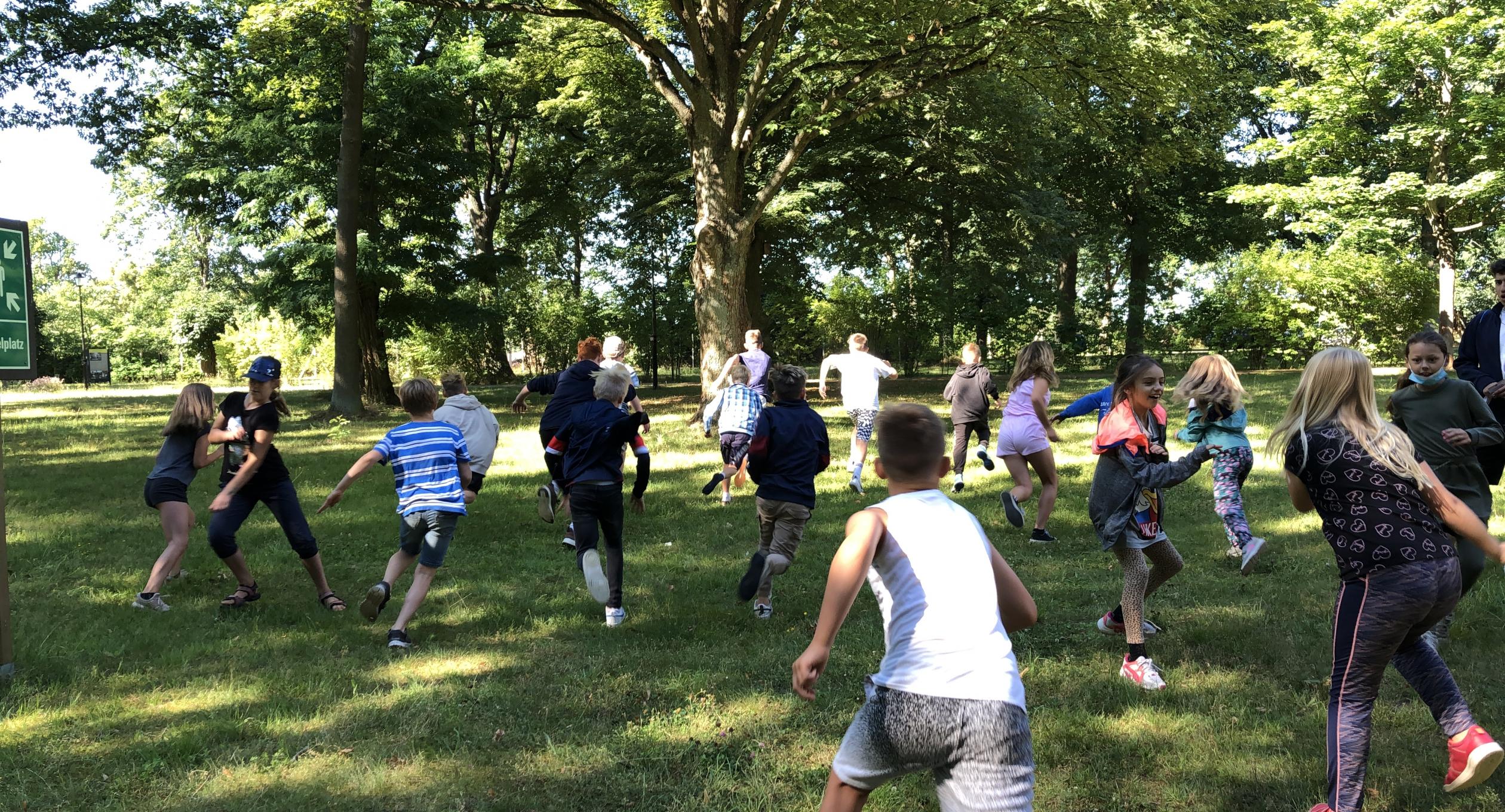 Kinder rennen aufgeregt über das Gelände, Spielgeldscheine fliegen durch die Gegend und werden hektisch in die Socken oder unter das T-Shirt gestopft. Dahinten im Gebüsch schleicht ein Junge durch das Unterholz, er trägt ein gelbes Regencape und eine Sonnenbrille, die Mütze hat er sich tief ins Gesicht gezogen – „Banküberfall“ im Kurt Löwenstein Haus! Die Kinder, die da als Schmuggler*innen und Spion*innen über das Gelände toben, sind Teil der Kreativferienwerkstatt „So sehen wir das! – Kinder reden mit“. Die 8-12-Jährigen aus Berlin und Brandenburg gaben den Startschuss für das diesjährige Ferienprogramm der Jugendbildungsstätte Kurt Löwenstein. Einige von ihnen kommen schon seit vielen Jahren. So auch der 11-jährige Max. Für ihn ist die Fahrt in den Sommerferien ein echter Höhepunkt: „Ich freue mich total auf die anderen Kinder, ich treffe alte Freunde und lerne immer wieder neue Kinder kennen.“